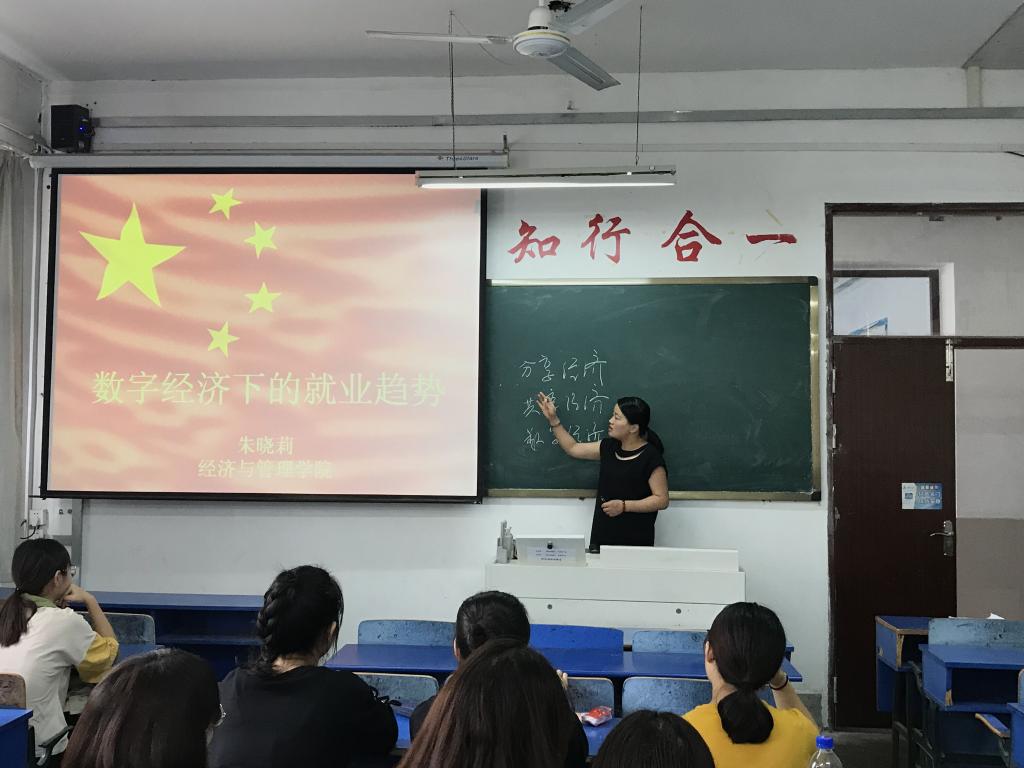 2019年9月23日上午,“行知讲堂”系列学术讲座在三孝口校区308教室举行。本次讲座由WilliamHill中文官方网站朱晓莉老师主讲,题目是“数字经济下的就业趋势”,来自2018级人力资源管理专业的员工聆听了讲座。