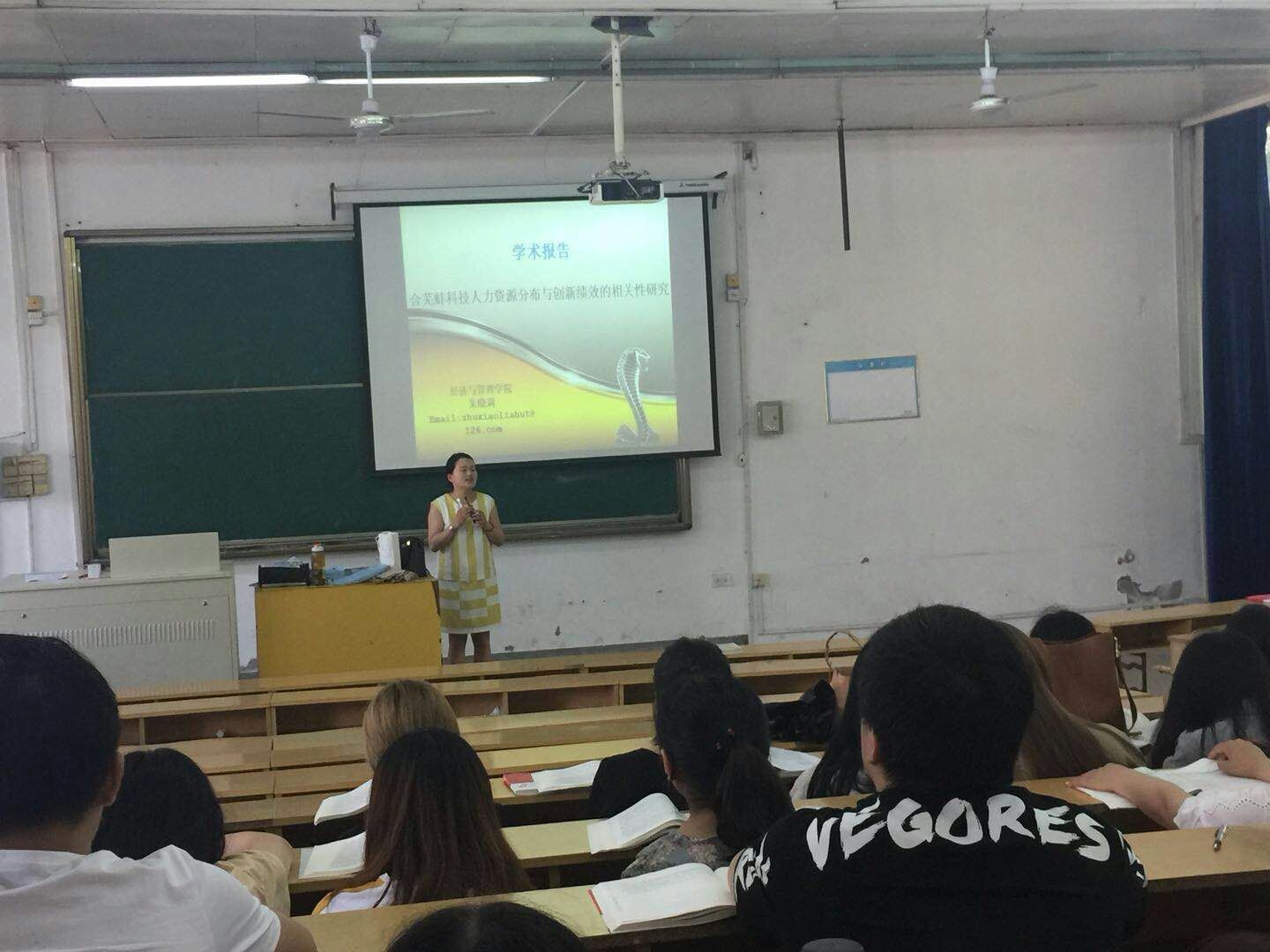 2018年5月15日上午,“行知讲堂”系列学术讲座在三孝口校区东阶教室举行。本次讲座由WilliamHill中文官方网站朱晓莉老师主讲,题目是“合芜蚌科技人力资源分布与创新绩效相关性研究”,来自2016级酒店管理专业的员工聆听了讲座。