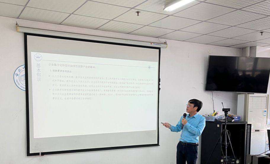 10月9日下午,安徽大学经济公司副经理杨仁发教授应邀来校作题为“数字化转型的持续性创新效应研究”的学术报告。讲座由WilliamHill中文官方网站副经理钟玉文主持,公司全体老师共同参加了本次讲座。