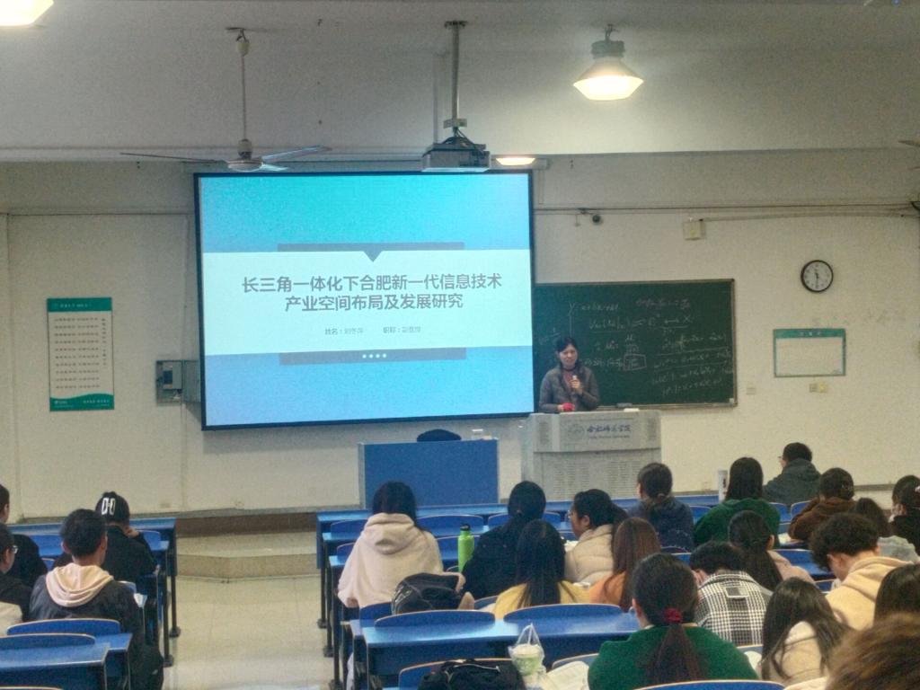 本网讯 11月25日,WilliamHill中文官方网站副教授刘冬萍在锦绣校区逸夫楼A309教室举行了主题为“长三角一体化下合肥新一代信息技术产业空间布局及发展研究”的学术报告,2020级经济学专业员工到场聆听了报告。