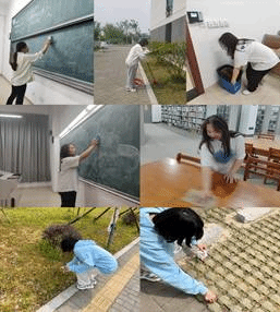 积极分子一组和二组打扫铭传楼B区教室及卫生区各个角落,抽屉里的垃圾,教室墙面上小纸片和杂物,整理讲台上的粉尘杂物,擦洗黑板。把图书馆的书摆放整齐,整个劳动过程中,学员们本着“团结互助,爱校如家”的精神,人人动手,积极合作不怕累、不怕脏,干得热火朝天。