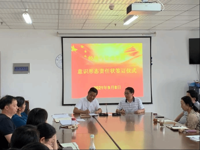 根据公司党委的相关要求,公司党委于9月8日召开意识形态工作责任状签订仪式,公司党政领导班子成员及全体教职工参加。仪式由党委书记沈辉同志主持。