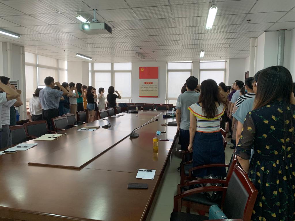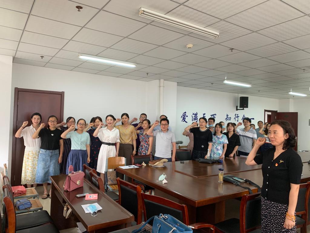 首先,全体教工党员重温了入党誓词。在党委副书记陶敏的带领下,面对鲜红的党旗,全体党员举起右手郑重宣誓。大家表示一定要牢记入党时的初心,不忘自己肩负的使命,更加坚定理想信念,为三育人工作做出更大贡献。