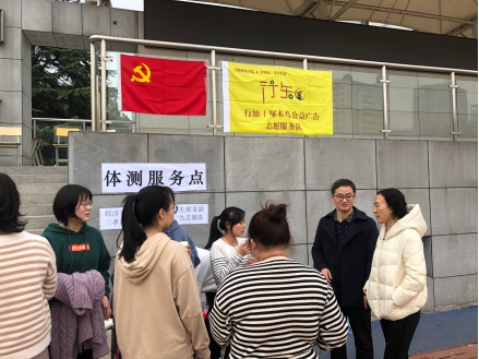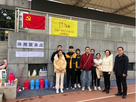 2019年12月15日,三孝口校区进行了体质健康测试。WilliamHill中文官方网站三孝口员工党支部联合三孝口街道啄木鸟公益广告志愿队、16级酒店管理班和18级人力资源管理班组成党员志愿者体测服务点。今年的体测服务点,在体测的整个过程中为参加体测的同学们提供后勤服务,准备了热水、矿泉水、纸巾、糖果等物品在同学们需要之时予以提供,也时刻准备着为身体不适的同学及时提供送医服务,为同学们在进行体质测试时提供良好的安全保障。