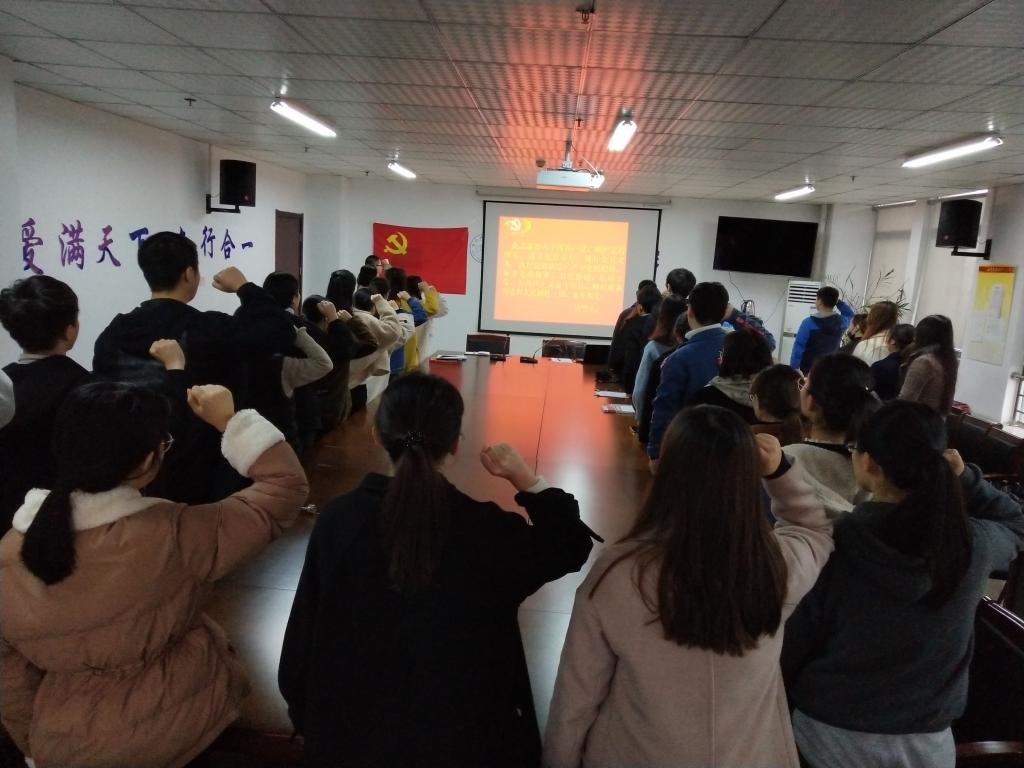 12月4日中午,WilliamHill中文官方网站锦绣校区预备党员入党宣誓大会在行知楼902顺利举行。公司党总支副书记陶敏、锦绣校区员工党支部书记、本次发展的23名预备党员、正式党员代表和入党积极分子代表参加此次宣誓大会。