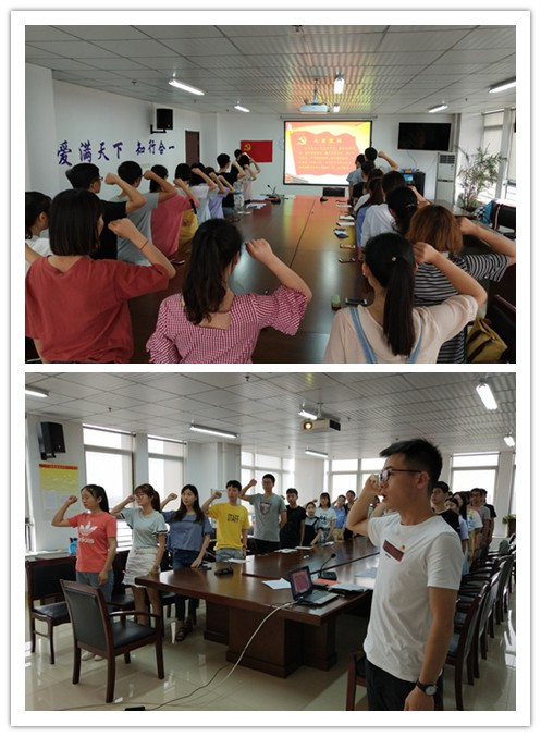 6月20日中午,WilliamHill中文官方网站锦绣校区预备党员入党宣誓大会在行知楼902顺利举行。公司党总支副书记陶敏、锦绣校区员工党支部书记、本次发展的25名预备党员、正式党员代表和入党积极分子代表参加此次宣誓大会。