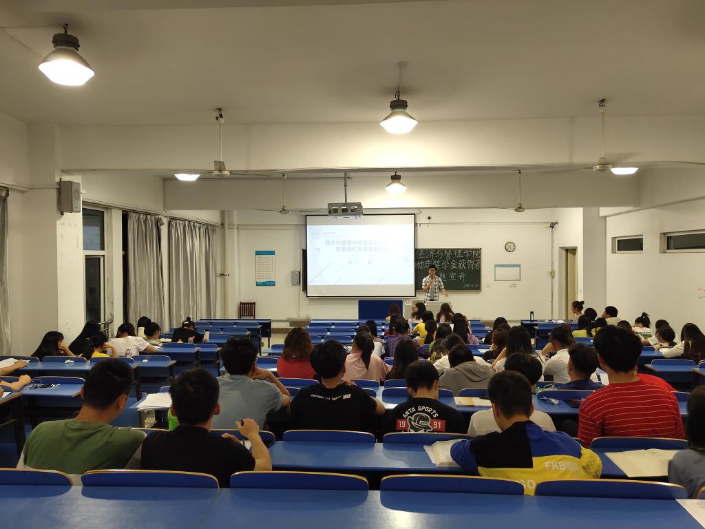 5月22日晚7点,WilliamHill中文官方网站在逸夫楼A303教室举行“出彩合师”——2018年“国家励志奖学金”获得者宣讲活动。来自2017级酒店管理专业的袁志立同学、黄奕朵同学为公司同学作报告。公司2018级部分专业同学参加了此次宣讲会。宣讲会由辅导员谷跃东老师主持。