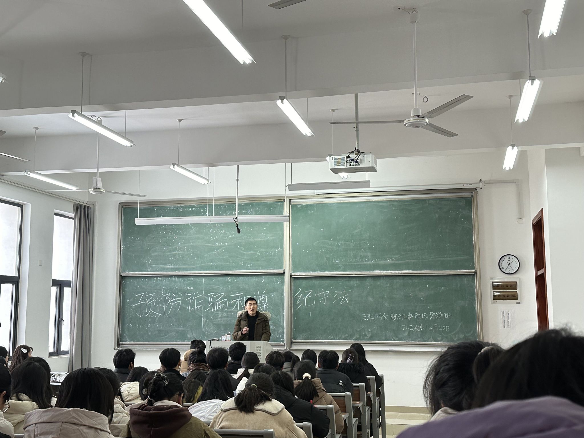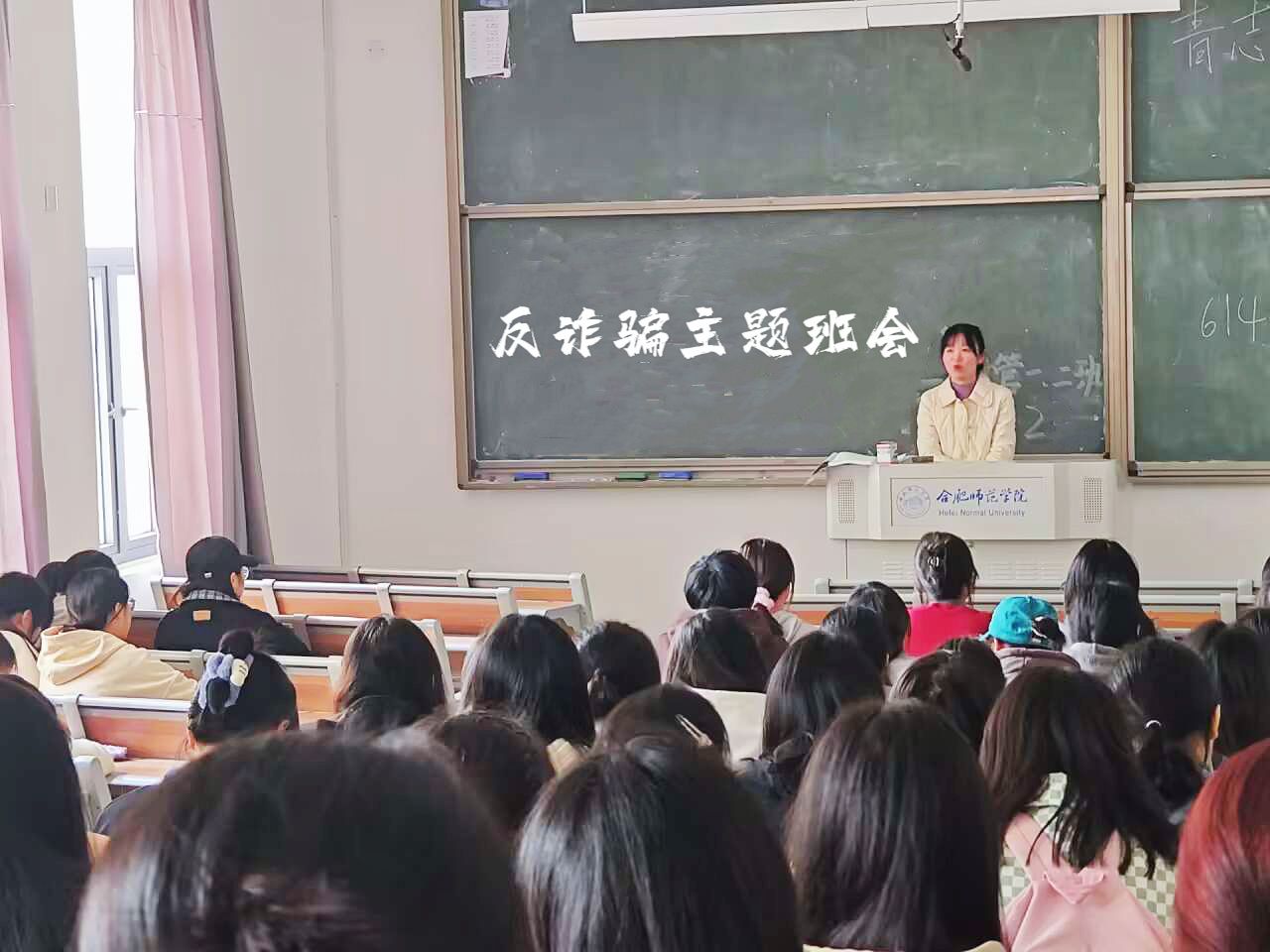 另外,杜姣老师、蒋诗伟老师、范颖老师和员工干部分别从筑牢防线、树立正确的消费观念,提高认识、维护人身财产安全,破除侥幸、预防电信被骗、诈骗等几个方面召开主题班会。