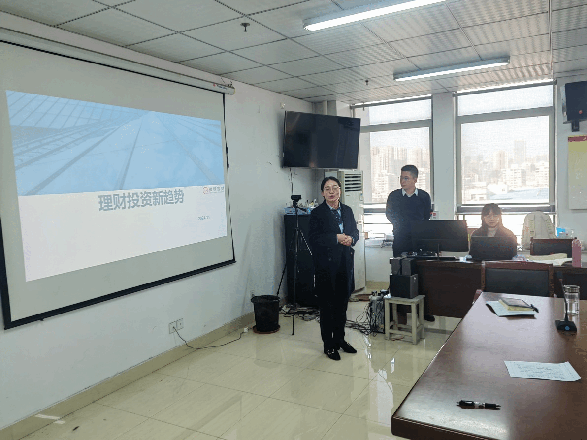 理财是现代人们生活中不可或缺的一部分。因此,为增强教职工们对理财知识的了解,经管公司分工会充分一会一品项目——“智慧理财,守护家庭财富”,于11月27日下午3点在行知楼902开展了“理财投资新趋势”知识讲座活动。活动邀请了徽商银行合肥分行个人金融部主管丁红主讲,经管公司全体教职工参加了本次活动。