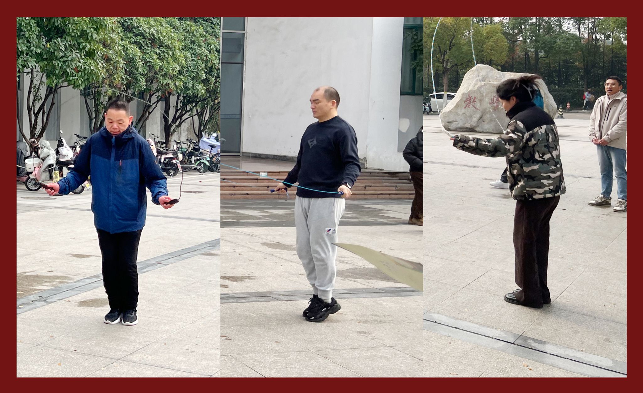 活动中,有的教职工跳绳技巧娴熟,速度飞快,让人目不暇接;有的则稳扎稳打,保持着均匀的节奏,展现出良好的耐力。比赛分为男子组和女子组,以一分钟内跳绳次数为活动的参与方式,大家相互鼓励、相互学习,既锻炼了身体,也释放了压力。