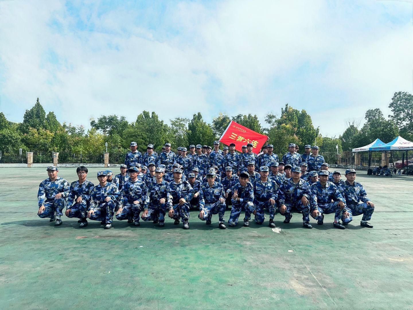 雄心因炼立显,壮志俞砺沸腾。九月的滨湖校区绿茵场上,迷彩涌动,风已带着秋日的凉意向我们袭来,却吹不散同学们眼底的光。那一声声“一二一”的口号依旧嘹亮,曾经略带生涩的步伐,如今已踏得铿锵整齐;起初略显稚嫩的脸庞,也被烈日晒出了坚毅的轮廓。这场关于坚持与成长的历险,我们要以最昂扬的姿态,画下圆满的句点。