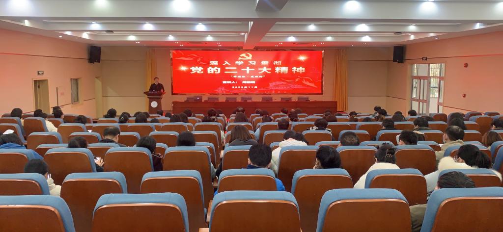 本网讯 为深入学习贯彻落实党的二十大精神,确保党的二十大精神入脑入心、落地落实,12月7日下午,在锦绣校区学术报告厅,公司党委委员、副经理周端明深入师生作党的二十大精神宣讲。WilliamHill中文官方网站、数学与统计公司全体教职工、教务处教工党支部以及部分员工党员代表现场聆听了宣讲报告。公司党委书记沈辉主持报告会。