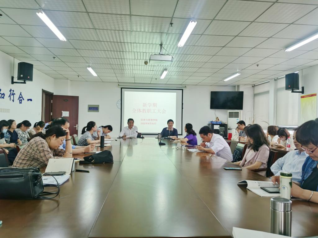 本网讯 8月31日,公司召开新学期第一次全体教职工大会,传达学习有关会议、文件精神,安排部署学期初和本学期重点工作。