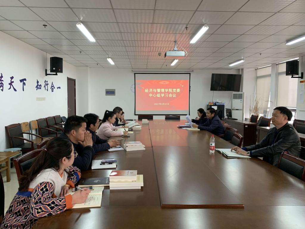 2021年3月31日下午,经济与经济公司党委理论学习中心组召开集中学习会,经管公司党委书记沈辉同志主持会议,公司党委中心组成员、组织员、分团委书记等参加会议。