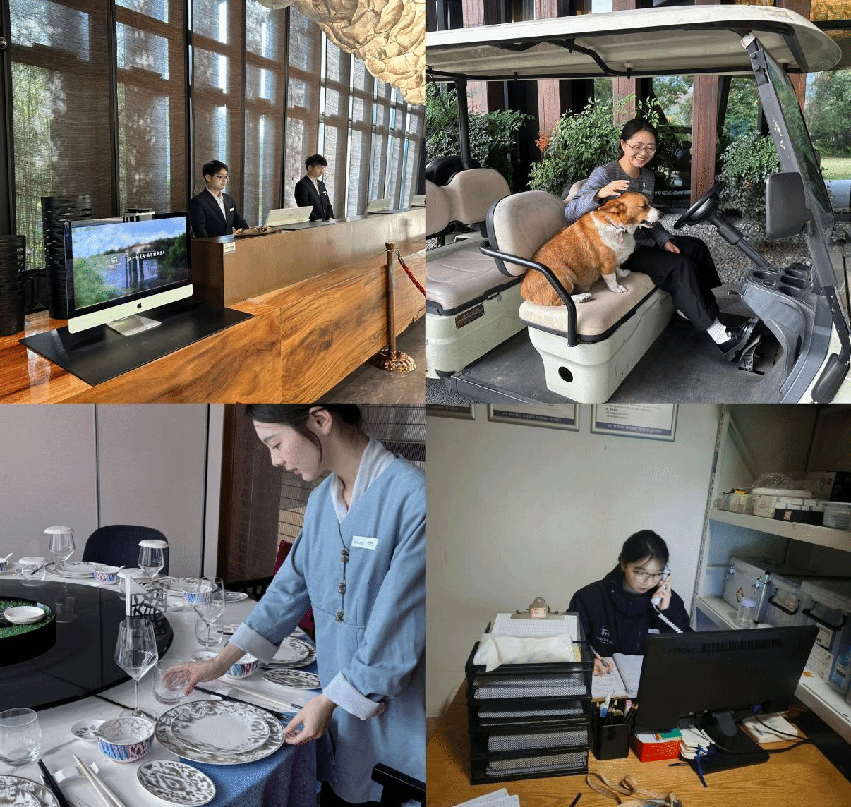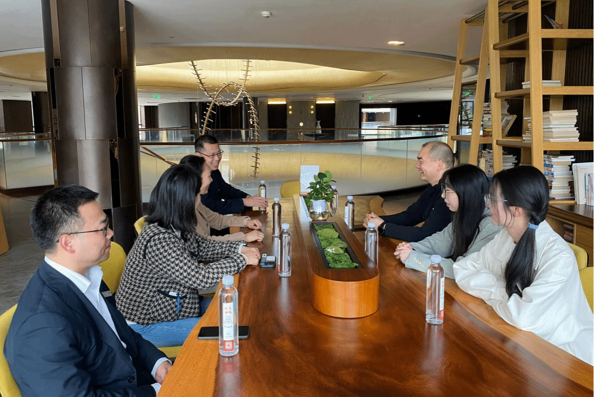 浙江郡安里文旅发展有限公司副总裁孙家峰、行政人事部经理陈其安、行政人事主管林沛瑜热情接待陶敏一行。双方首先就当前校企合作的进展情况进行了简短的交流,孙家峰对公司输送的优秀员工给予了高度评价,认为他们专业基础扎实、学习态度积极主动,能够快速适应企业工作环境和岗位要求。陶敏对企业为员工提供的优质实习平台和悉心指导表示感谢。