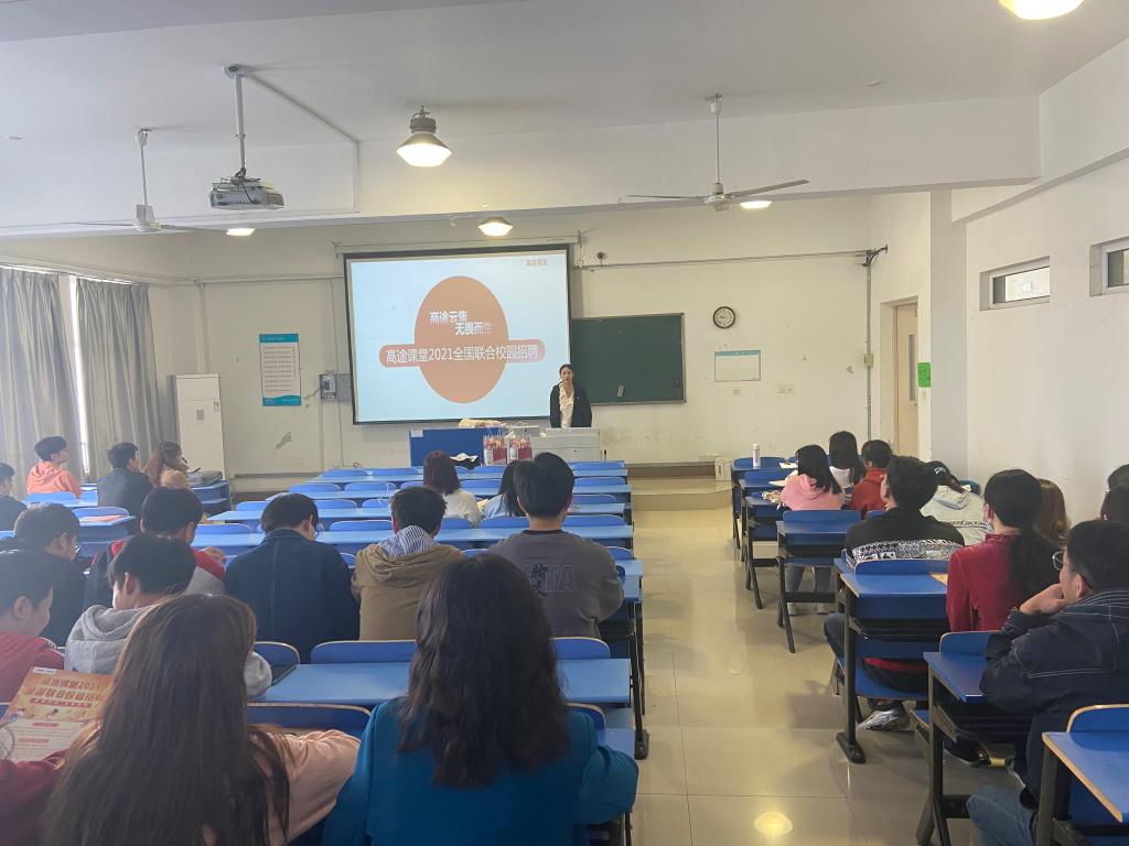 公司对两家企业一行人的到来表示热烈欢迎。招聘会上,两家招聘单位负责人通过PPT、视频播放、现场互动等方式介绍企业概况、招聘岗位、薪资待遇、企业文化以及晋升渠道等同学们较为关心的问题,同时高途课题教育集团还邀请目前入职的员工,原20级数学与统计公司优秀员工李海燕分享求职经验和心得感受,现场气氛活跃。毕业生根据自身求职意向踊跃投递简历,积极参与企业现场面试。