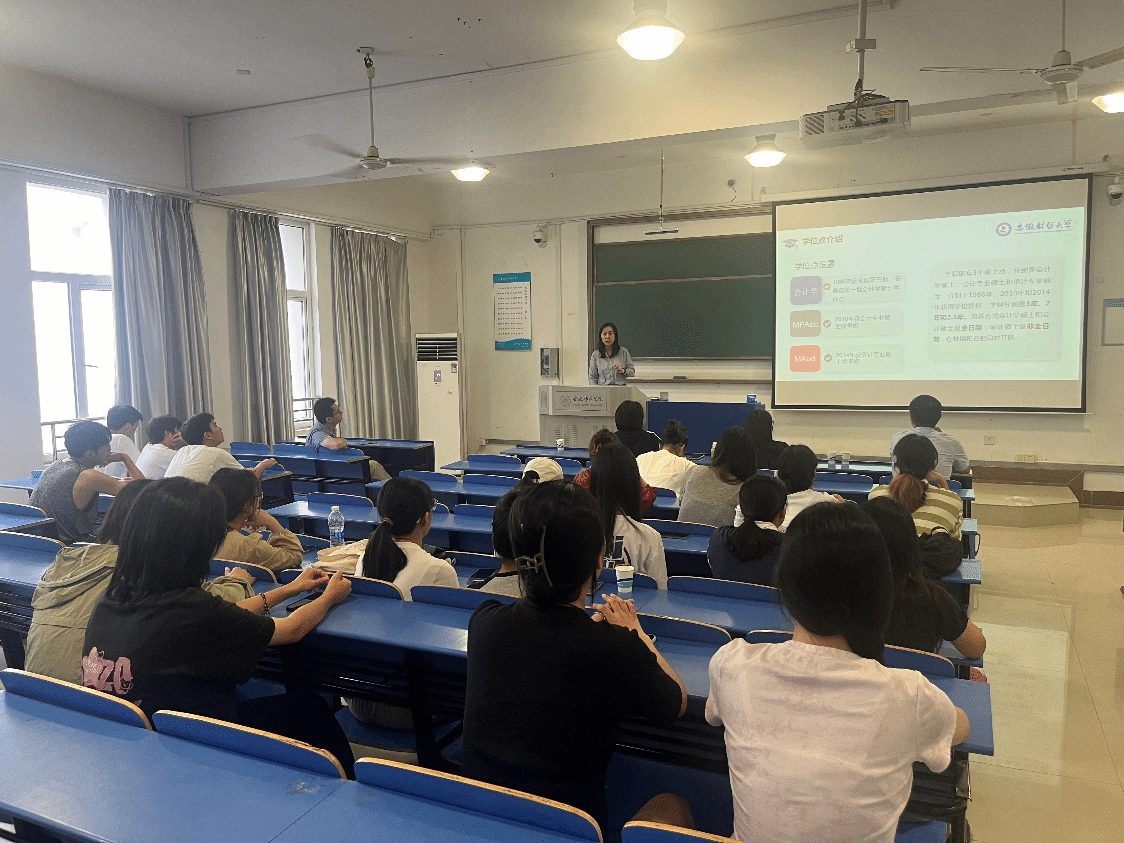 本次宣讲会内容丰富,分为招生政策解读和交流互动两个环节。在第一个环节,安徽财经大学会计公司副经理董小红全面介绍了安徽财经大学会计公司的概况、发展历程、团队力量、专硕和学硕专业设置等。郭凤华主任则从公司概况、公司特色、招生专业、团队建设、专业报录情况和员工就业前景等多个维度,为同学们作了精彩纷呈的讲解。三位主任还分别介绍了各自研究中心的特色、研究方向、培养方式、就业去向和优秀毕业生情况,极大地增进了同学们对安徽财经大学会计公司报考专业的认知,进一步激发了学子们对研究生学习和就业的憧憬。