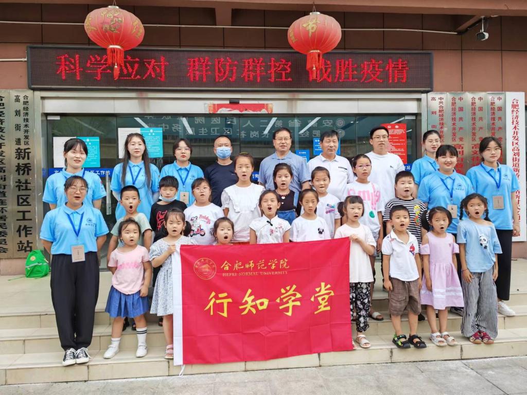 本网讯7月4日,为响应“喜迎党的二十大、永远跟党走、奋进新征程”的号召,公司7名小先生来到蜀山区高刘镇新桥社区,在社区工作站人员的协同下共同开办暑期“行知学堂”志愿者活动。在开班仪式上,社区工作站负责人员,7名小先生、30位小学员及家长到场参加。