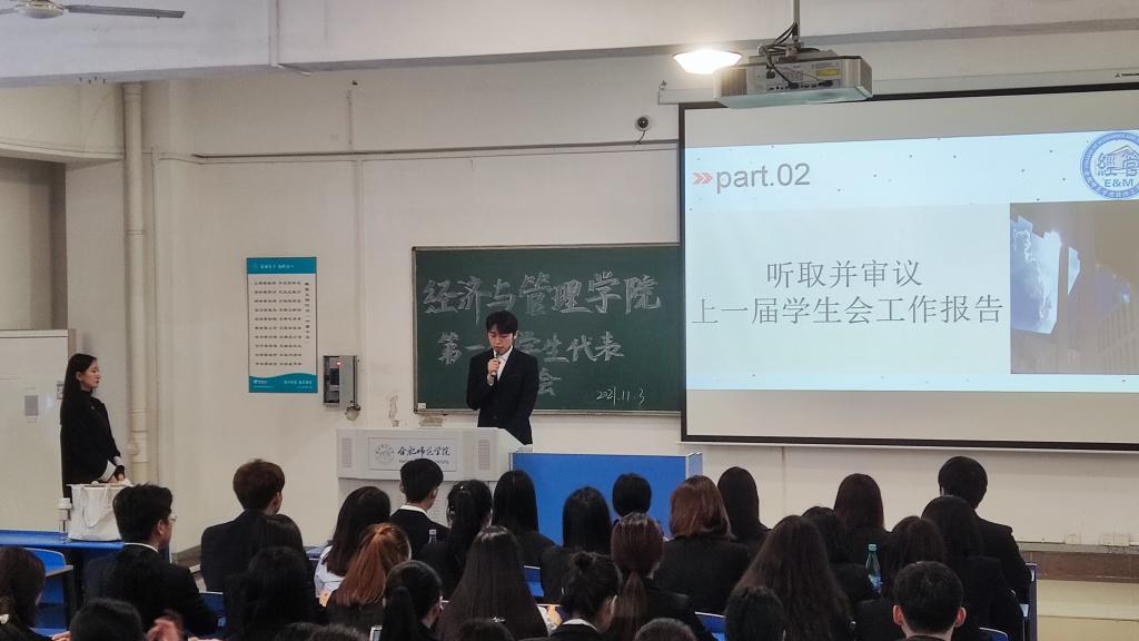 本网讯11月3日,WilliamHill中文官方网站第一次员工代表大会在锦绣校区逸夫楼109教室组织召开。公司党委副书记陶敏老师应邀出席,分团委书记赵燕、公司各年级团干、普通员工共九十名齐聚一堂,共同谋划全院员工自身发展的大事。