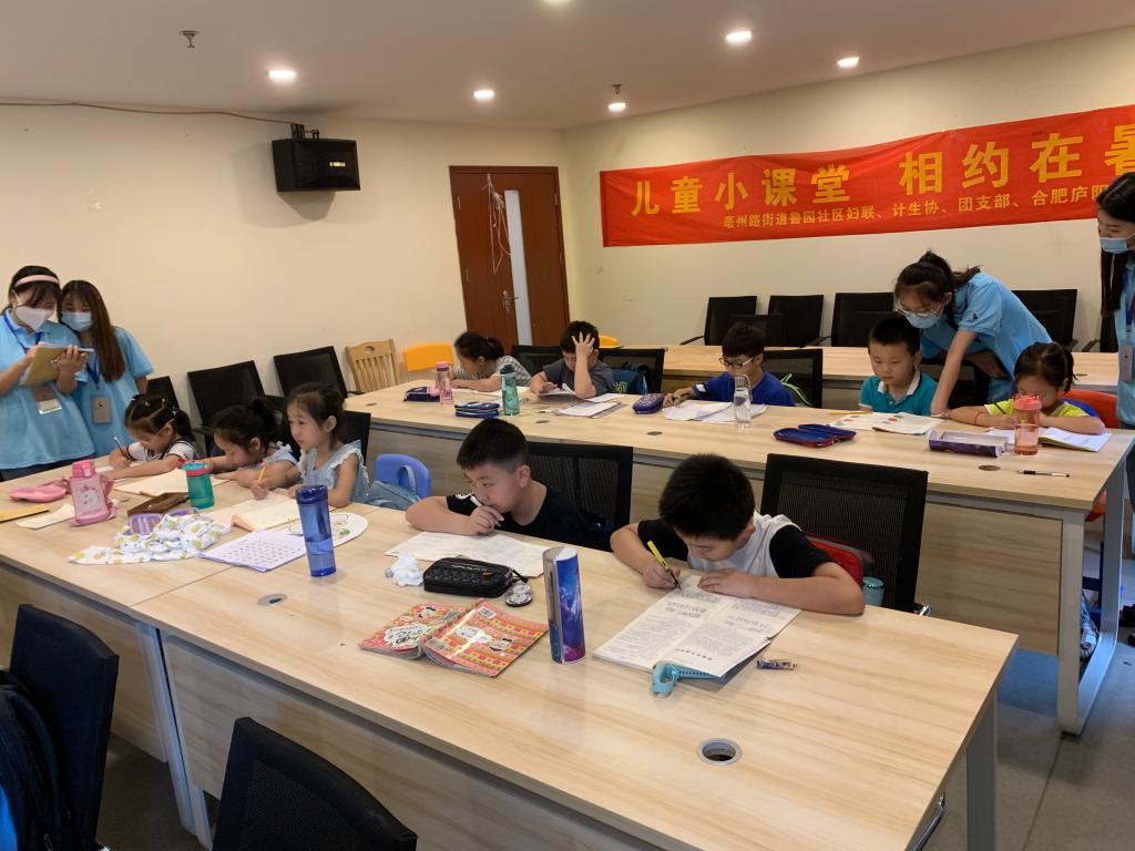 本网讯2021年7月29日上午,由公司WilliamHill中文官方网站、马克思主义公司、外国语公司组成的8名志愿者们来到了安徽省合肥市庐阳区鲁园社区,并且携手社区主任一同开展了行知学堂开班仪式。由于台风“烟花”的影响,此次学堂推迟了3天,可谓称得上是好事多磨。这是公司WilliamHill中文官方网站与鲁园社区的第三次合作,双方致力于为小学员们营造一个安静、充实的学习环境。