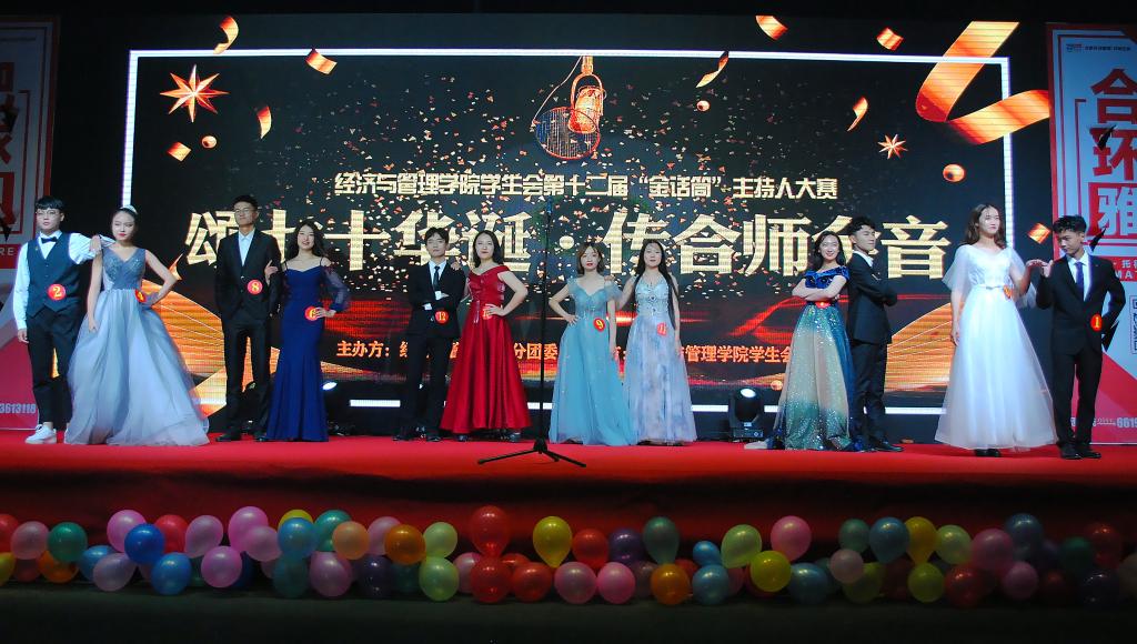 本次比赛以“颂七十华诞,传合师金音”为主题,旨在促进校园精神文化建设,丰富同学们的老员工活。经过长达两周的选拔与训练,共有12位参赛选手进入决赛。比赛中,每位选手通过自我展示,才艺表演以及主持搭档等环节开展了激烈的比拼,更是赢得了观众们热烈的掌声。