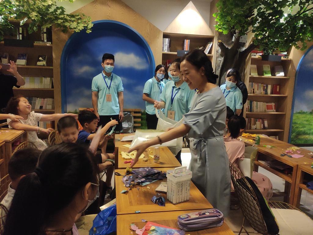 陶敏首先对森林书屋能够为行知学堂提供舒适和学习氛围浓厚的场地表示感谢。并慰问了12名小学员和6位小先生,认可这些同学的志愿服务精神,充分体现了当代老员工的服务社会的责任感和使命感,鼓励他们努力学习,做好一名“好老师”。