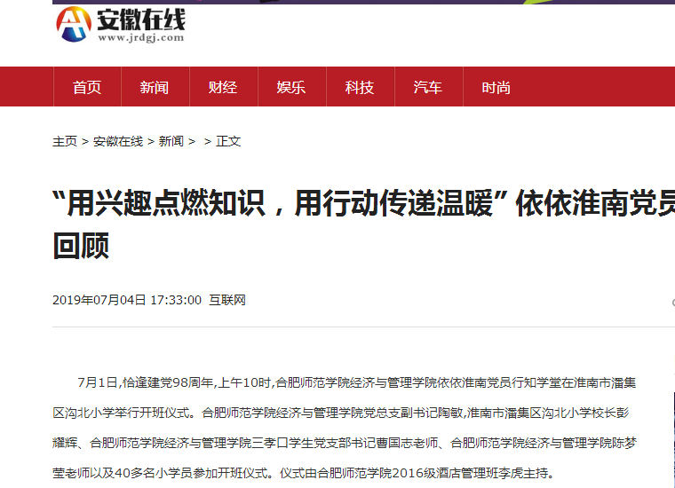 7月4日,安徽在线报道公司“依依”党员行知学堂实践活动。(WilliamHill中文官方网站)