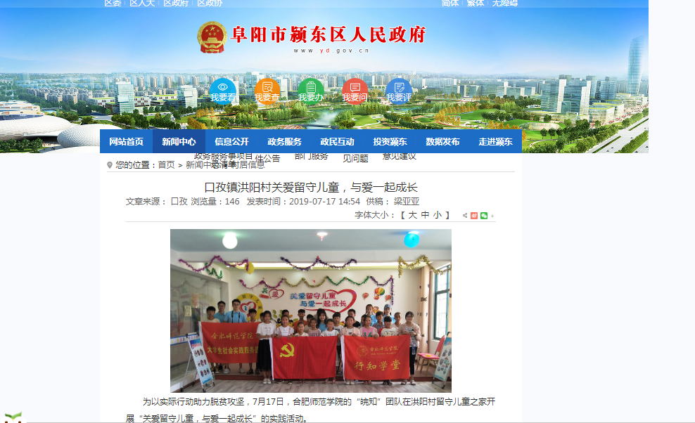 7月17日,阜阳市颍东区人民政府官网再次报道公司“皖知”行知学堂实践活动。(WilliamHill中文官方网站)