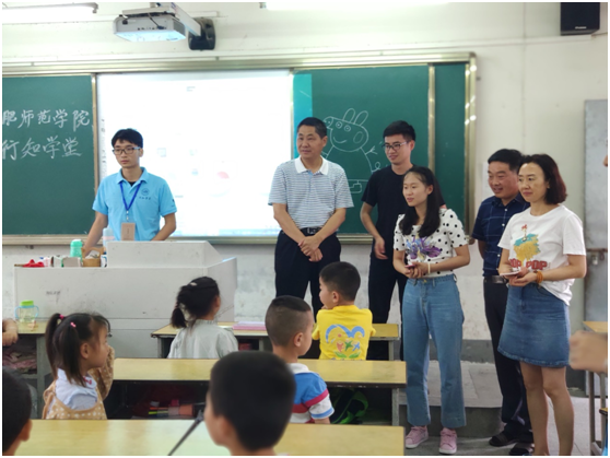 沈辉书记一行人的到来受到当地小学董事长和老师孩子们的热烈欢迎。沈辉书记亲切地与小学员们交谈,询问他们的相关情况并向“小先生”们了解了行知学堂的选址、招生和课程安排等,对于小先生的积极参与、精心备课、团结协作给予高度认可,同时嘱咐他们要注意自身和小学员们的安全,随后,沈辉等人向小学员们赠送了学习用品,并合影留念。