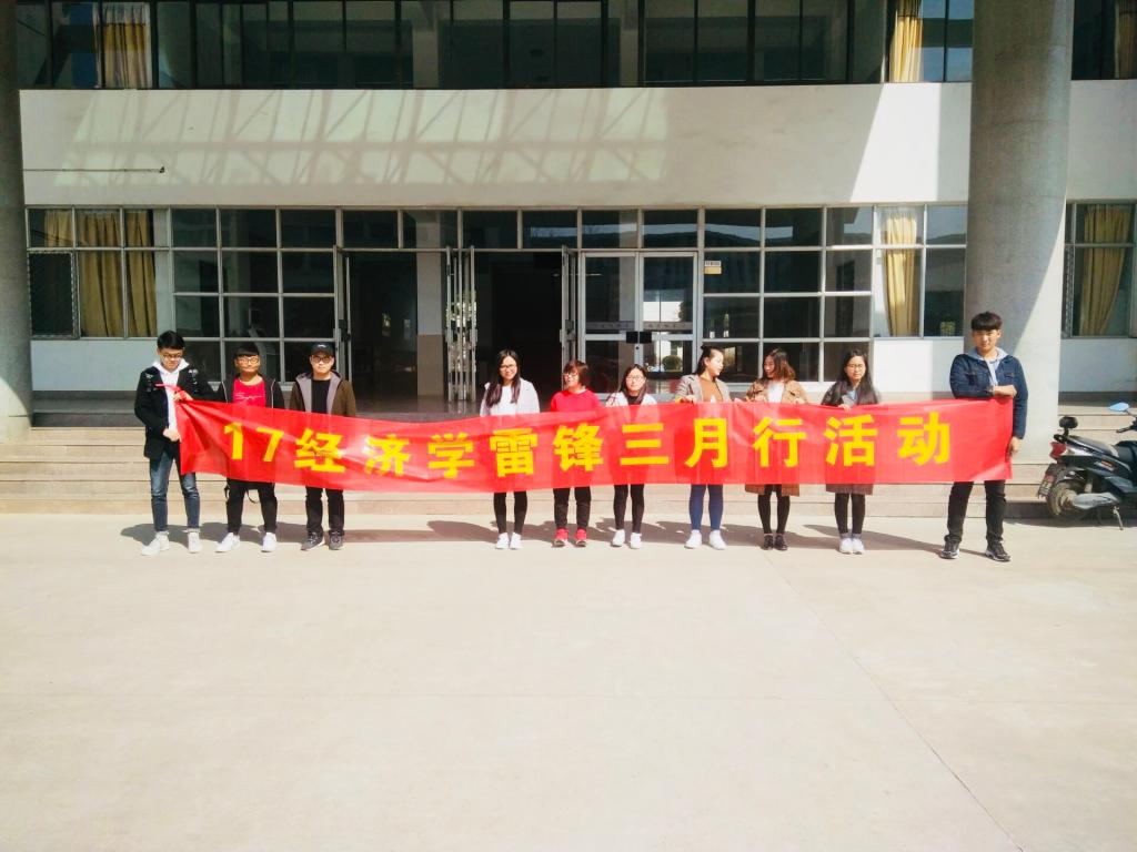 2018年3月11日,WilliamHill中文官方网站17级经济学班开展了以“三月春风暖人心,雷锋精神伴我行”为主题的学雷锋活动,在班上团支书等班干的带领下,17级经济学班十余名同学开展了打扫自习室,绿化校园等活动。