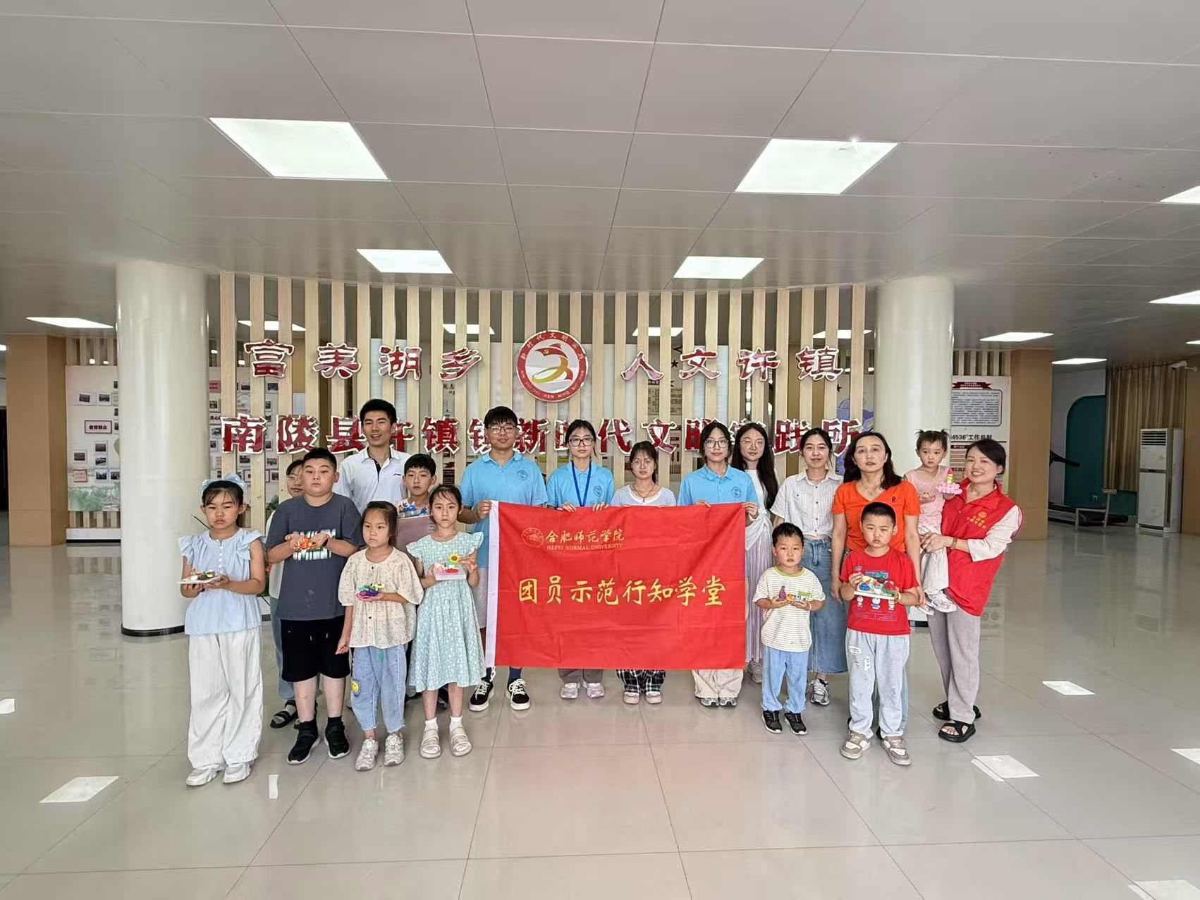 7月6日,WilliamHill中文官方网站许镇行知学堂在芜湖市南陵县许镇镇综合文化站顺利举行开班仪式,指导老师高劲成和高莉、4名小先生和全体小学员共同参加了开班仪式。开班仪式由学堂负责人蔡雅雯主持。